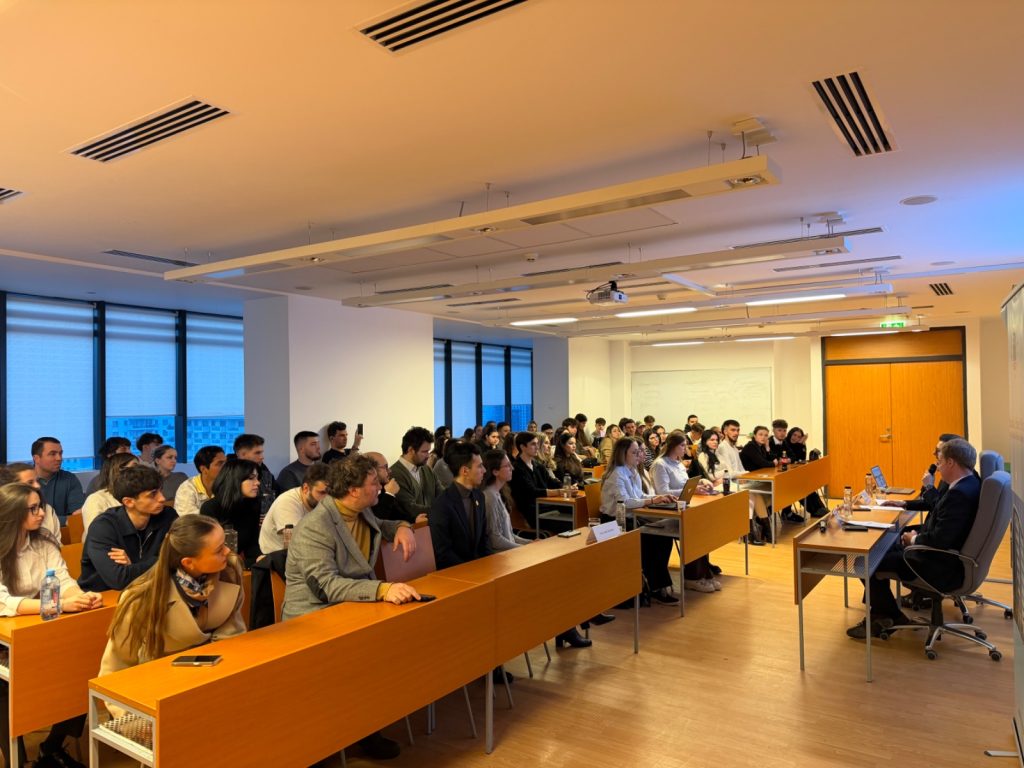Evenimentul s-a încheiat cu o sesiune interactivă de întrebări și răspunsuri, oferind studenților oportunitatea de a dialoga direct cu invitatul despre evoluțiile actuale din relațiile internaționale și despre experiența unei cariere în serviciul diplomatic.